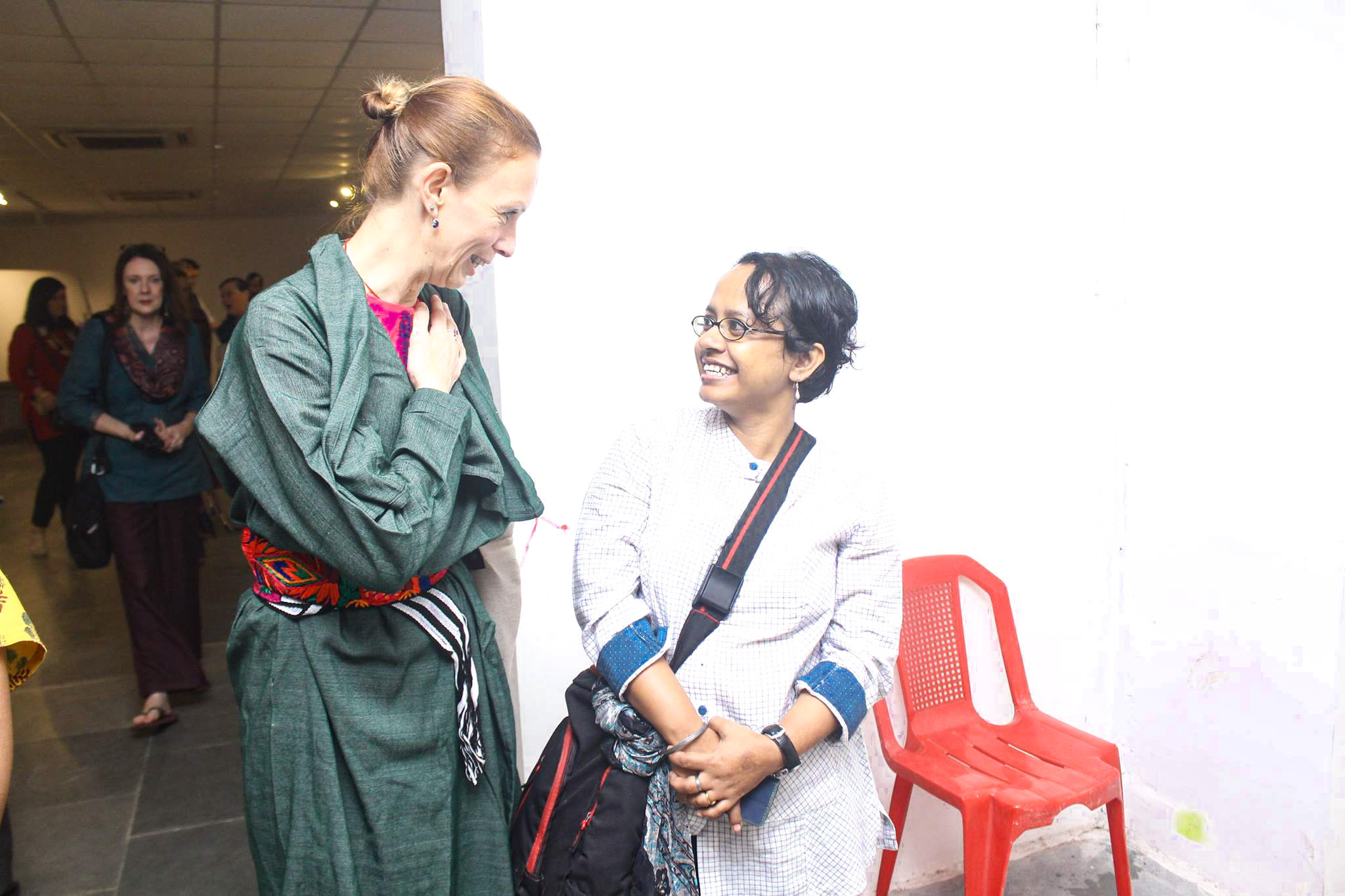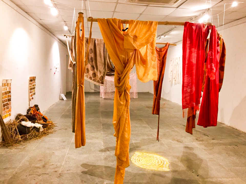 The concepts of exchanging skills and perceiving knowledge from local textile art practice implemented in their art practices. It was an artistic journey to explore and the making process of the artist’s works were documented by photographer Biswajit Sahani. He is one of the talented photographers as well as an artist.